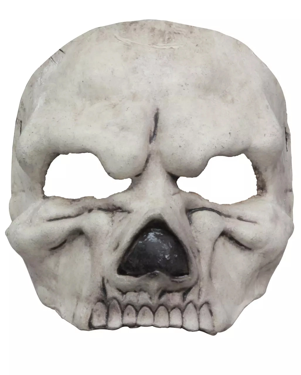 Selten hatte der Tod ein schaurigeres Antlitz zu bieten als dieses hier. Der fratzenhaft anmutende Totenschädel, der die Hälfte Deines eigentlich ja ganz nett aussehenden Gesichts verdeckt, kann einem schon das Fürchten lehren. Sogar hartgesottene Kerle werden wohl die Beine in die Hand nehmen und laufen, wenn sie Dich näher betrachten. Dein Mund und Dein Kinn sind noch menschlich, die Nase aber und der Rest vom Kopf lassen nichts Gutes vernmuten. Für die anderen jedenfalls. Du dagegen kannst als fieser Sensenmann an diesem Halloween den Spaß Deines Lebens haben.