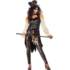 Das Belladonna Vampir Frauenkostüm ist eine elegante Halloween Vampir Verkleidung für Damen. Es handelt sich um eine schwarze Leggings, ein länger geschnittenes Samt-Jacket und ein Jabot. Die Schulterpartie des Jackets ist leicht gepufft und an Ärmeln und Saum befinden sich schwarze Spitzen-Applikationen. Du erhältst dieses elegante Vampir Damen Kostüm für Halloween in Größe S-XL. Trage hierzu die Scarecrow Vampir Eckzähne Small