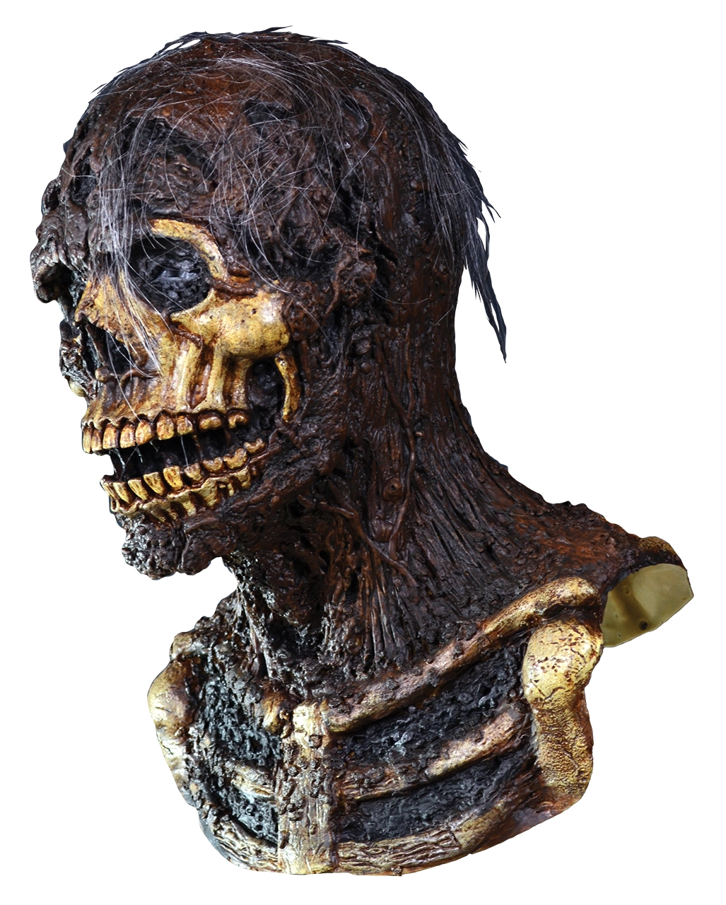 Die offizielle Creepshow Nate Maske zeigt originalgetreu den Untoten aus der Episode “Father’s Day”, der seiner ganzen Familie rachsüchtig nach dem Leben trachtet. Vom modrigen Totenschädel mit dem schütteren Haar über den sehnigen Hals mit skelettiertem Brustteil stimmt jedes Detail der Filmvorlage. Sogar die Maden wurden wie in Originalmaske von Special Effect Meister Tom Savini besonders realistisch mit Hilfe von Rice Krispies angefertigt. Komplettiere deine Zombie-Verkleidung mit den Untoten Handschuhen und einer Portion Filmblut.