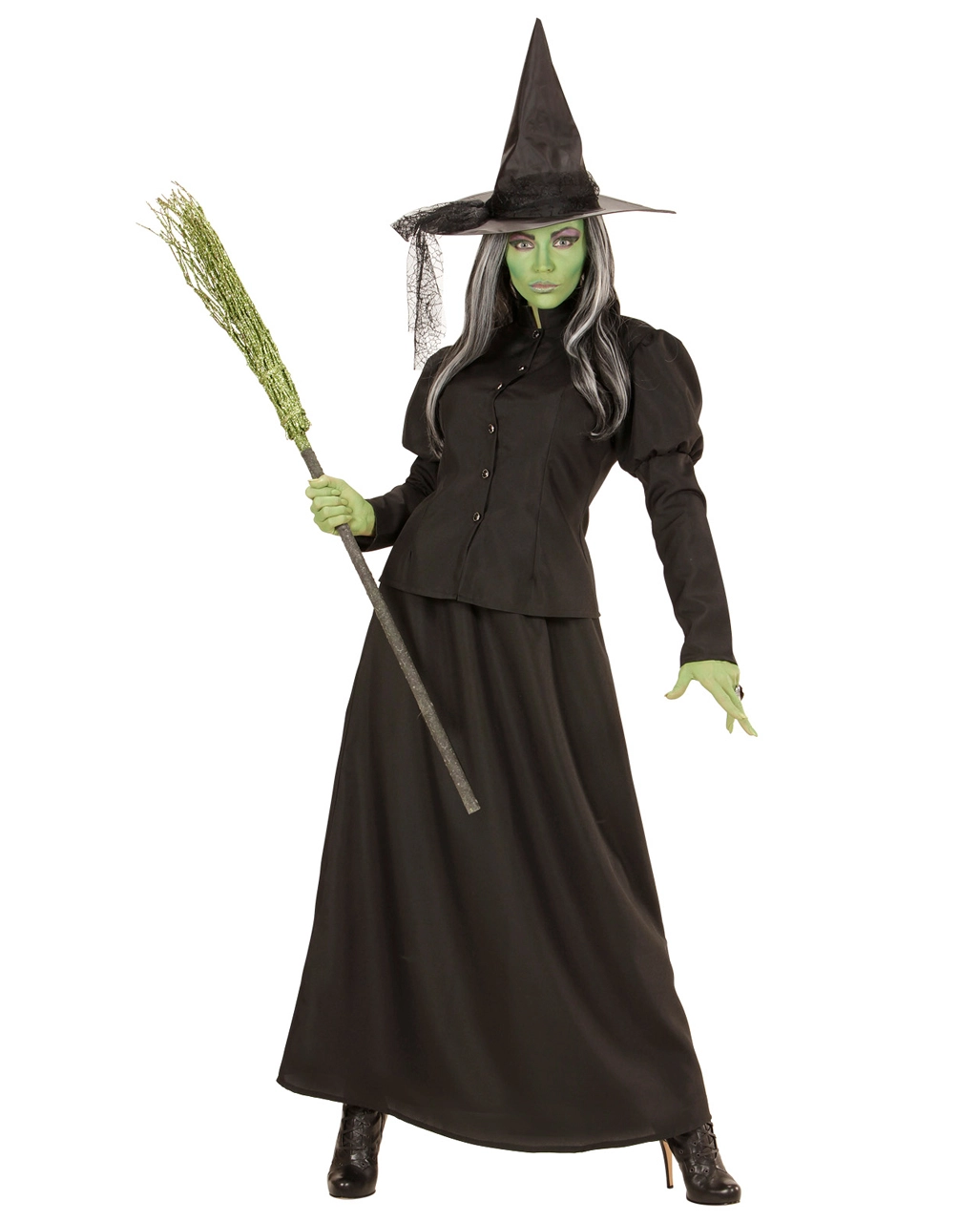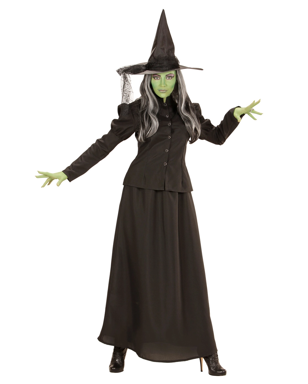 Die Klassische Märchenhexe Kostüm macht aus dir eine dunkle Magierin wie sie im Buche steht. Ob Fasching oder Walpurgisnacht, das Märchenhexe Kostüm lässt dich beeindruckend düster und geheimnisvoll aussehen. Das Kostüm der Magierin besteht aus einem langen schwarzen Rock, der leicht ausgestellt ist und einer taillierten schwarzen Jacke. Passend zu dieser Robe der Hexe trägt die Dame einen schwarzen spitzen Hexen Hut. Um deinen Auftritt zu pimpen empfehlen, wir die passenden Accessoires aus unserem Shop. Wie wäre es mit dem Krummer Hexenbesen 3-teilig 125 cm.