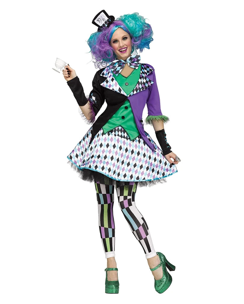 Verkörpere mit unserem Kostüm verrückte Hutmacherin einen völlig abgedrehten Charakter! Egal ob du Nicht-Geburtstage feiern oder Teepartys veranstalten möchtest – mit dem crazy Faschings Kostüm bist du bestens verkleidet und wirst an Karneval garantiert aus der Menge hervorstechen!