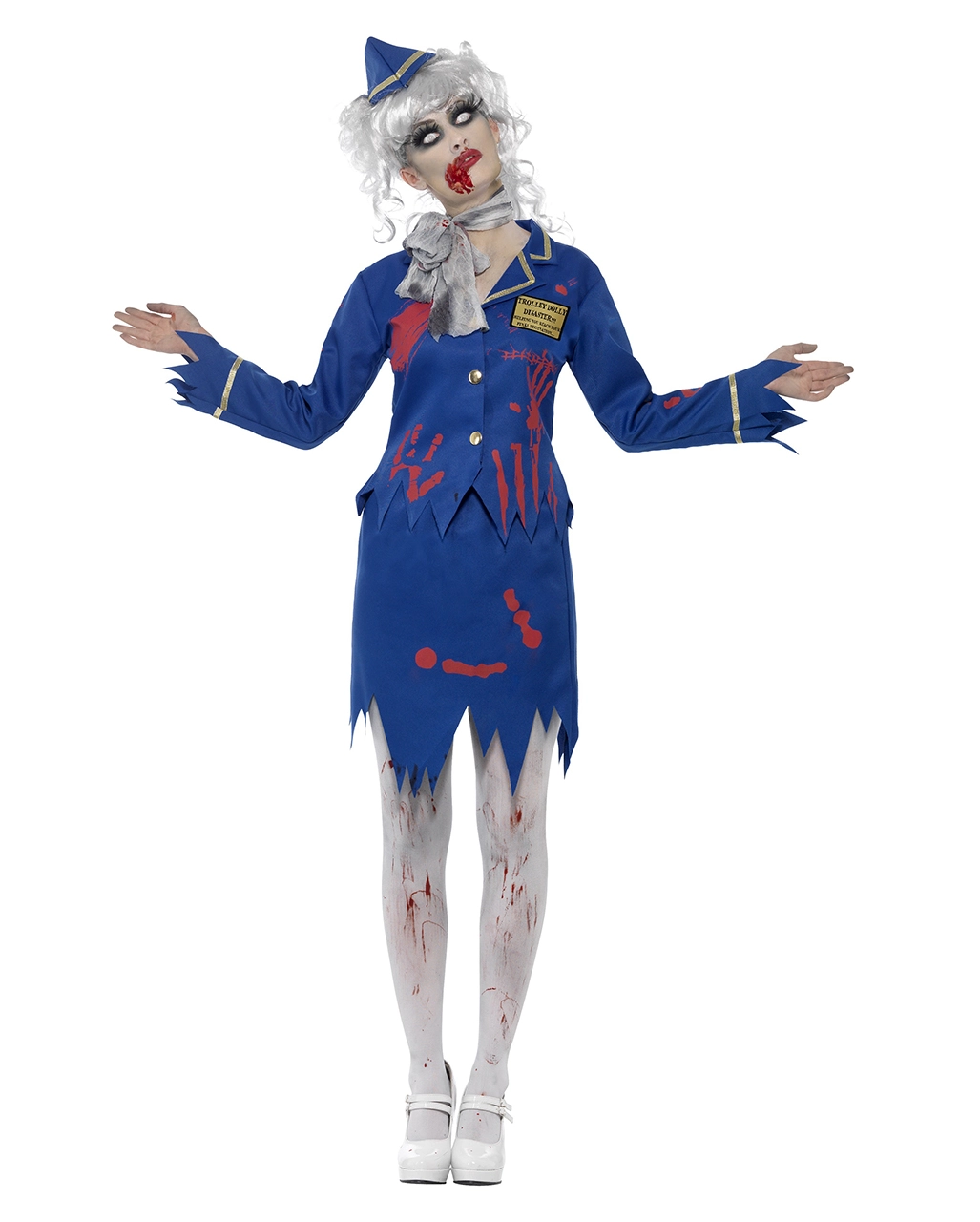 Flugzeuge transportieren die Menschen in kürzester Zeit über den gesamten Erdball. Allerdings ist das Fliegen in Zeiten terroristische Bedrohung auch ein Risiko-Faktor. Wenn wie in dem Splatterfilm “Flight of the living dead” auch noch Untote in luftiger Höhe ihr Unwesen treiben, wird diese Gefahr noch vergrößert Mit dem Zombie Stewardess Outfit kannst auch du in die Rolle eines fliegenden Untoten schlüpfen.